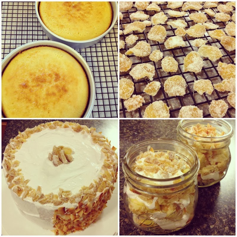 The newest member of our department, Ashleigh's, birthday was at the beginning of February so I made her this ginger-lime cake with marshmallow frosting. I also made some candied ginger for a garnish, since she loves ginger so much!